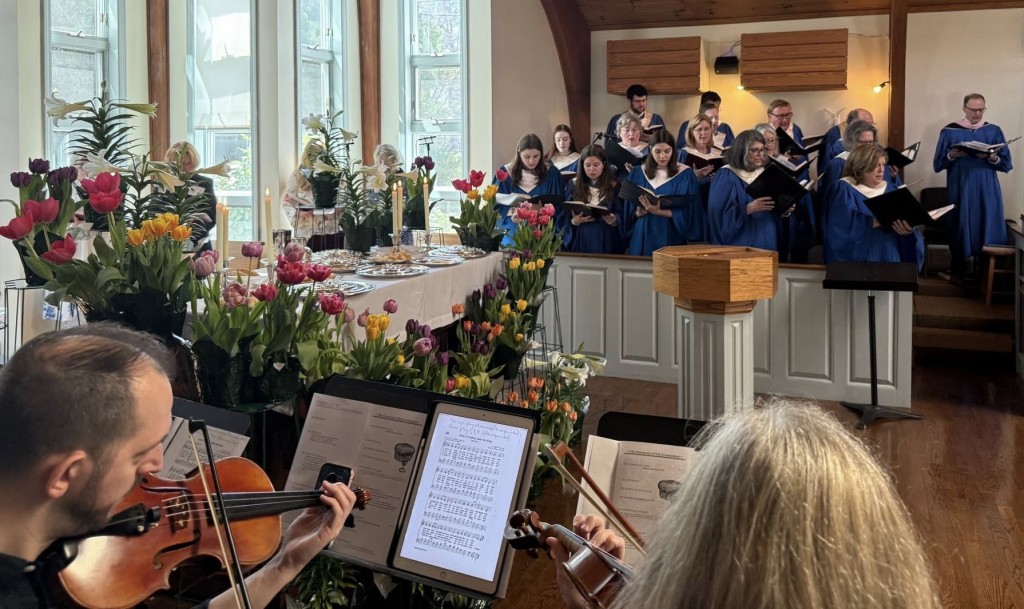 Expanded choirs sing at the special services on Christmas Eve and Easter